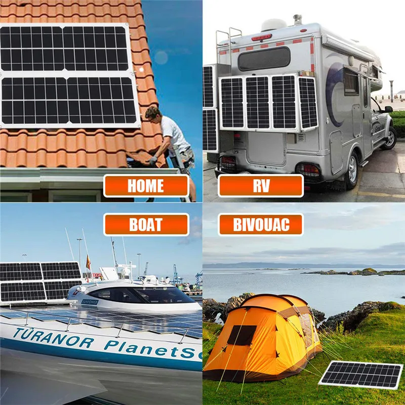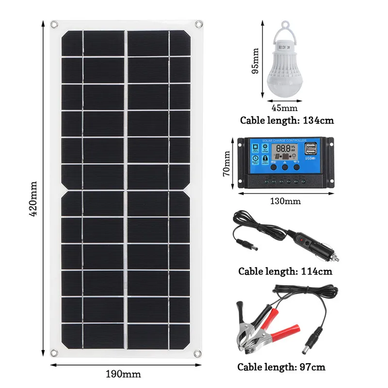 5in1 10W 12V 5V USB Solar Panel Charger Monocrystalline Flexible Cell Generator Lighting System W/